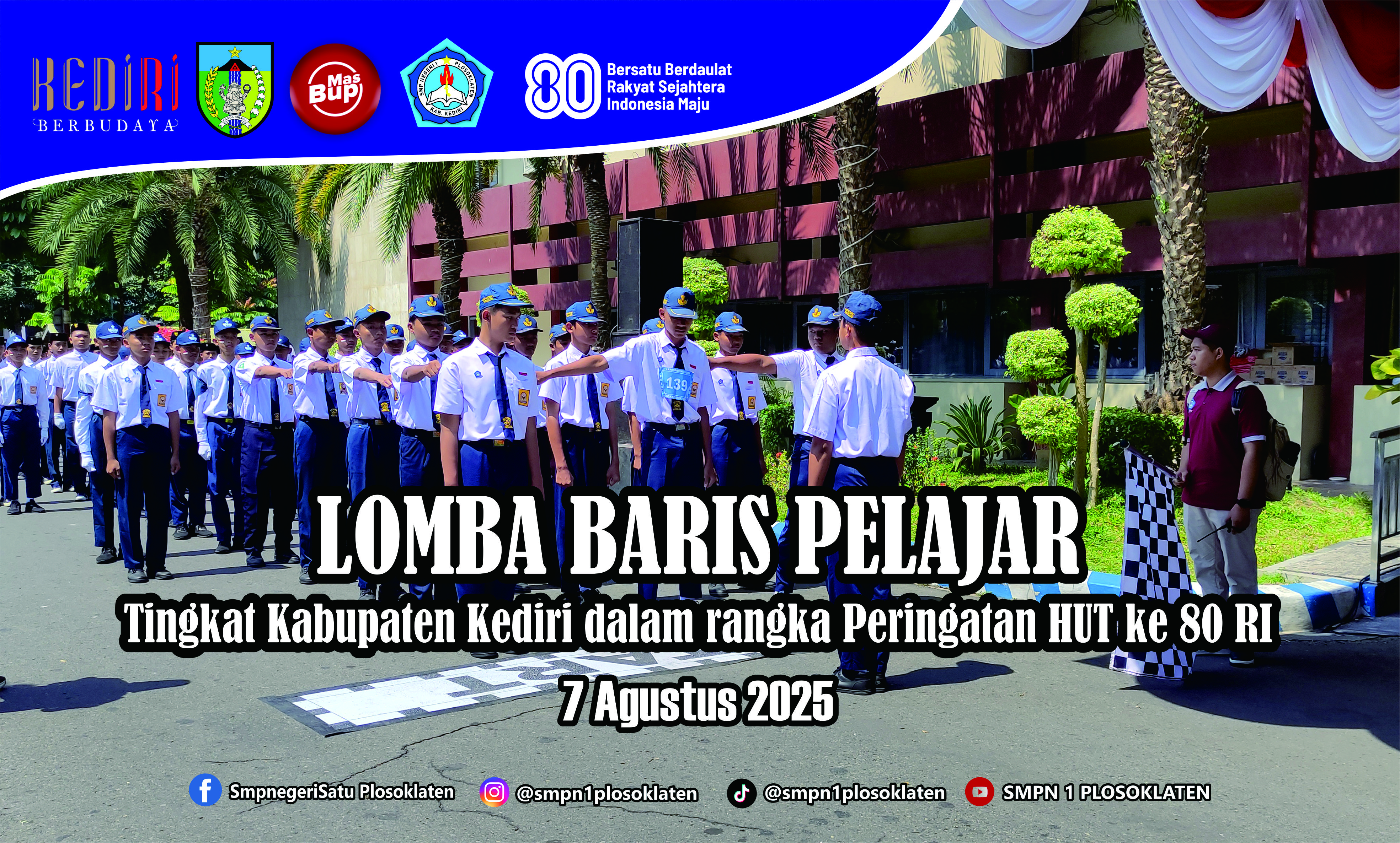 Dalam rangka memperingati HUT ke-80 Republik Indonesia, SMPN 1 Plosoklaten turut berpartisipasi dalam Lomba Baris Pelajar tingkat Kecamatan Plosoklaten dengan mengirimkan empat pleton